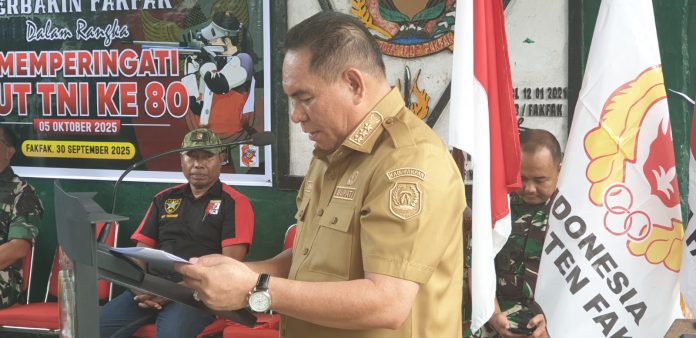 Fakfak – Bupati Fakfak. Samaun Dahlan saat memberikan sambutan pada pelaksanaan pembukaan lomba menembak dalam rangka memperingati HUT TNI Ke-80 (5 Oktober 2025) besok.
