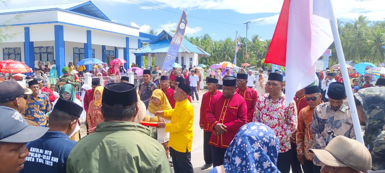 Tual – Kafilah Kecamatan Pulau-Pulau Kur tiba di Tayando Yamtel. Sabtu, 4 Oktober 2025 siang menjelang sore, rombongan ini dipimpin Kepala Kecamatan KPulau-Pulau Kur. Johan Renwarin didampingi Ketua LPTQ Kecamatan Kur. Upang Rettob.