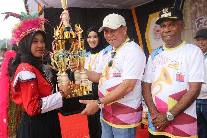 Saya mau sampaikan, ini bukan pertandingan. ini baru kita baru uji coba suatu parade drumband. oleh karena itu selaku Bupati dan Wakil serta Sekda. kami memberikan apresiasi. ini hadiah bukan juara khusus bagi peserta yang tampil”, Supprot Bupati Fakfak.